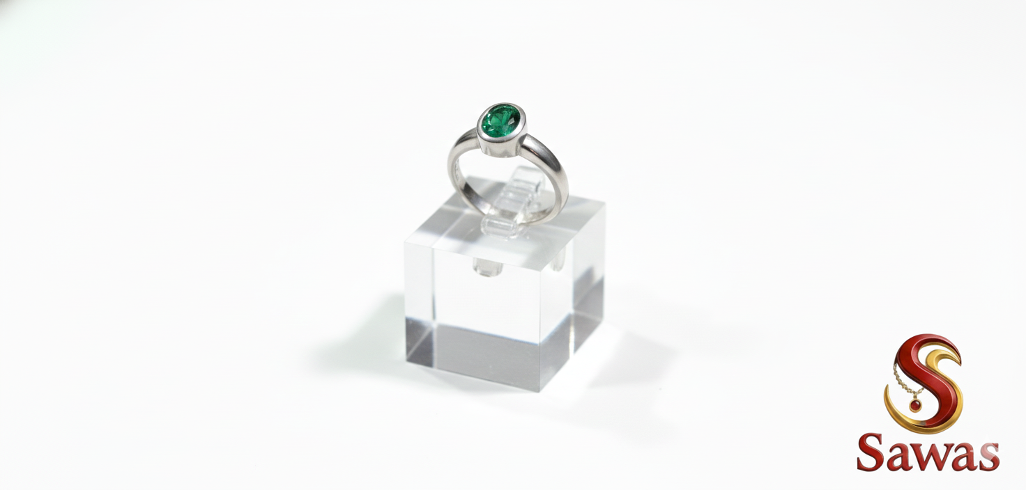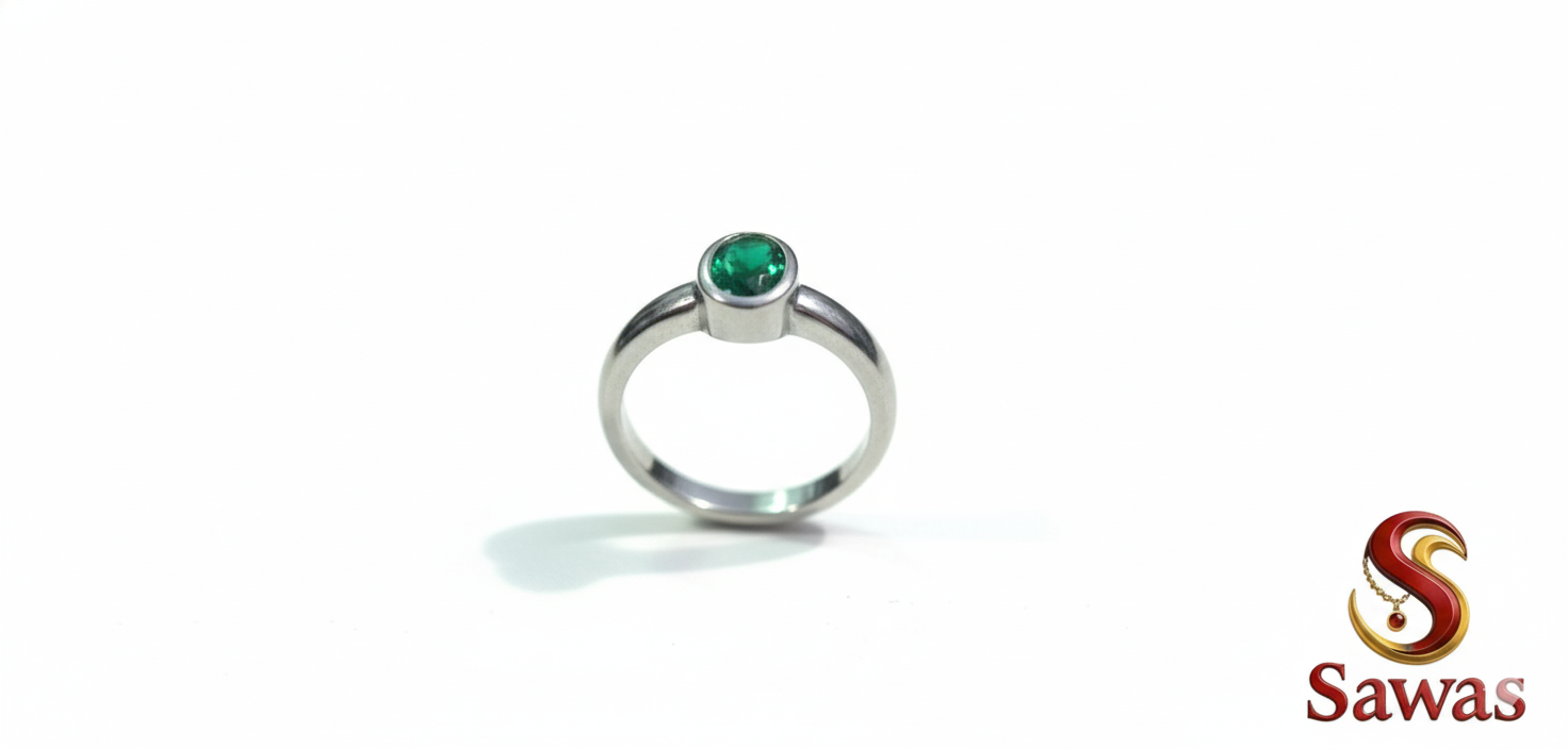Embrace understated luxury paired with a pop of color. Whether you’re adding to your own collection or gifting it to a loved one, the sleek silver ring with a round emerald truly embodies elegance in its purest form.