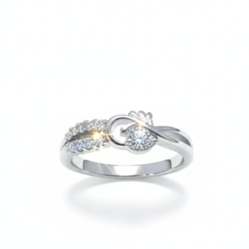 Crafted with impeccable attention to detail, the swirl-inspired design captures the essence of graceful motion, symbolizing fluidity and balance. The silver finish adds a refined shine, ensuring the ring complements outfits of all styles. From its exquisite curves to the luminous stones that catch the light at every turn, this piece is designed to make a lasting impression without overpowering its wearer’s look.