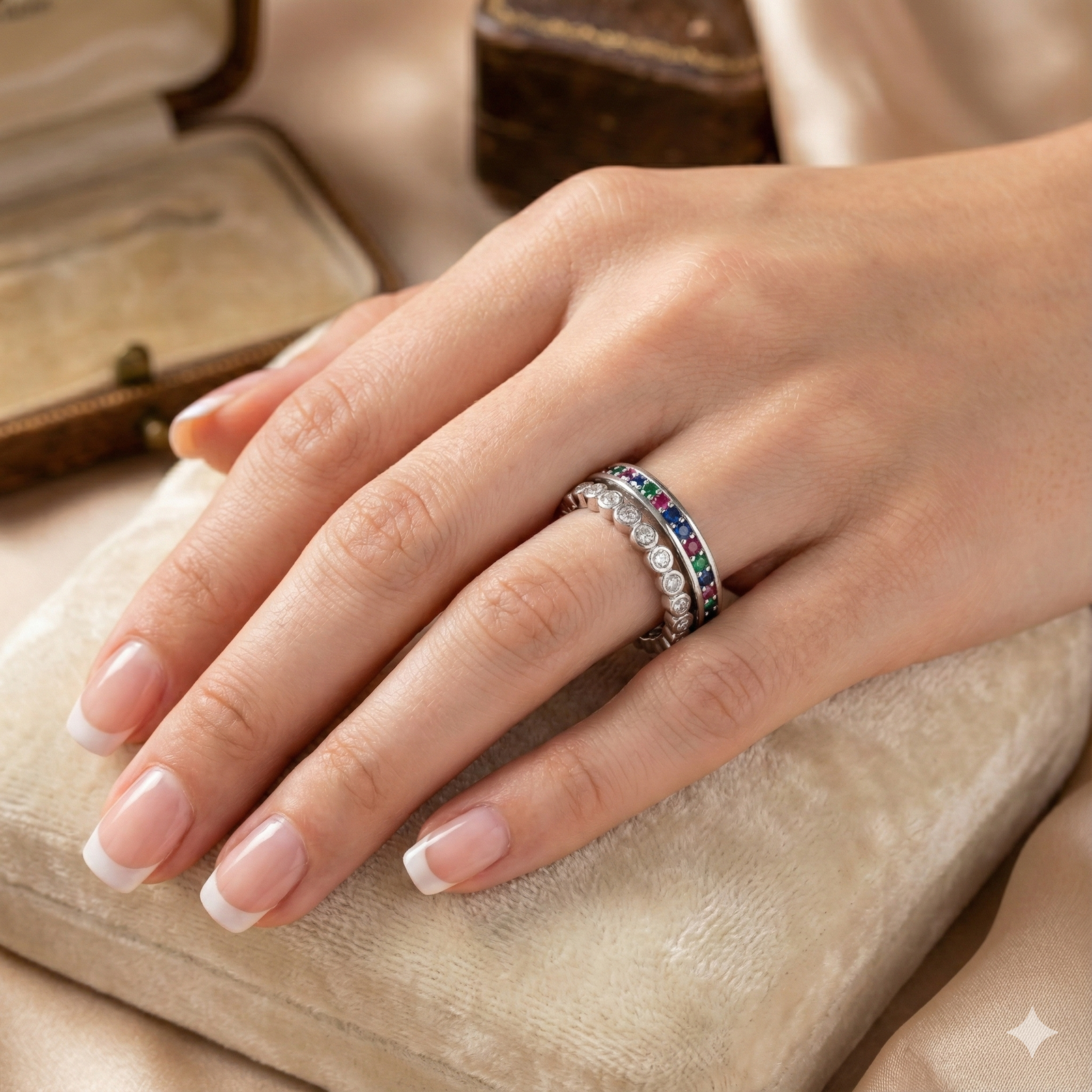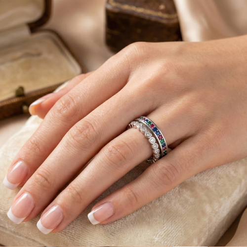Both our Silver Crossover Ring and Multi-Color Band Ring are crafted using 92.5 sterling silver – a hallmark of durability and high quality. Sterling silver is not only hypoallergenic but also ensures a long-lasting shine that stands the test of time. The intricate attention to detail, from the precisely cut gemstones to the seamless band designs, highlights the thoughtful artistry of these rings, making them a worthwhile addition to any jewelry collection.