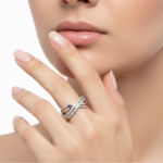 The Silver Crossover Ring is the epitome of chic, boasting a unique criss-cross (“X”) design crafted with intertwined split shanks. One band features a high-polished silver finish for a sleek and understated look, while the overlapping band dazzles with pavé-set sparkling white stones, providing an eye-catching brilliance. These sparkling stones—whether cubic zirconia or diamonds—enhance the overall allure of the ring. The contemporary yet timeless style makes it a versatile option to complement both casual and formal ensembles.