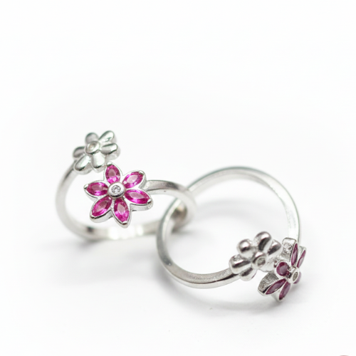 Inspired by nature and elegance, the Lotus Flower Rings showcase a timeless design. This pair of silver rings features intricate lotus flower motifs with pink central stones and sparkling white accent stones. Perfect for those who admire graceful and harmonious designs, these rings exude a sense of tranquility while adding a luxurious touch to any outfit. Wear them as a set or mix and match for a personalized, stylish look.