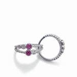 Lotus Flower Rings: Inspired by nature’s grace, these silver rings boast an intricate lotus flower motif adorned with pink central stones and dazzling white accents. A celebration of beauty and symbolism, these rings make a thoughtful gift or personal treasure.